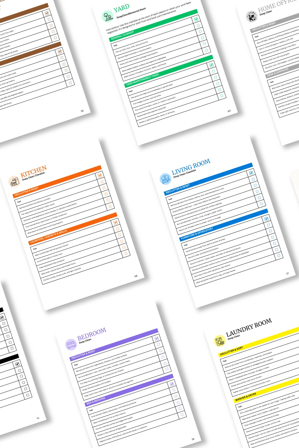We built a system that takes the overwhelm out of deep cleaning. A printable planner that tells you exactly what to do next, breaks it into small wins, and actually works with your real-life schedule (even if you only have 10 minutes a day).