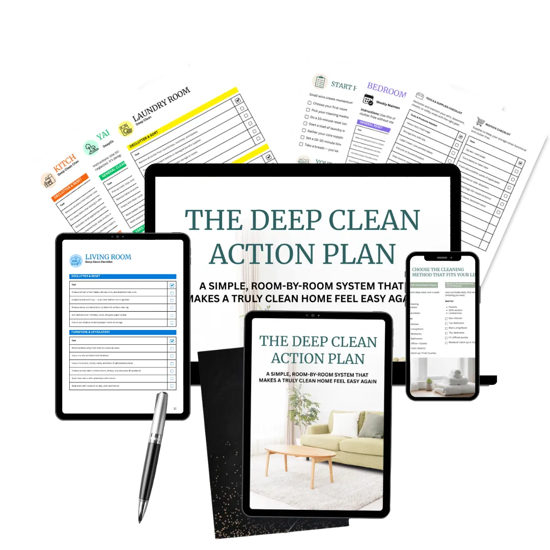 The Deep Clean Action Plan walks you through a method that works with your schedule, your energy levels, and your real-life home.